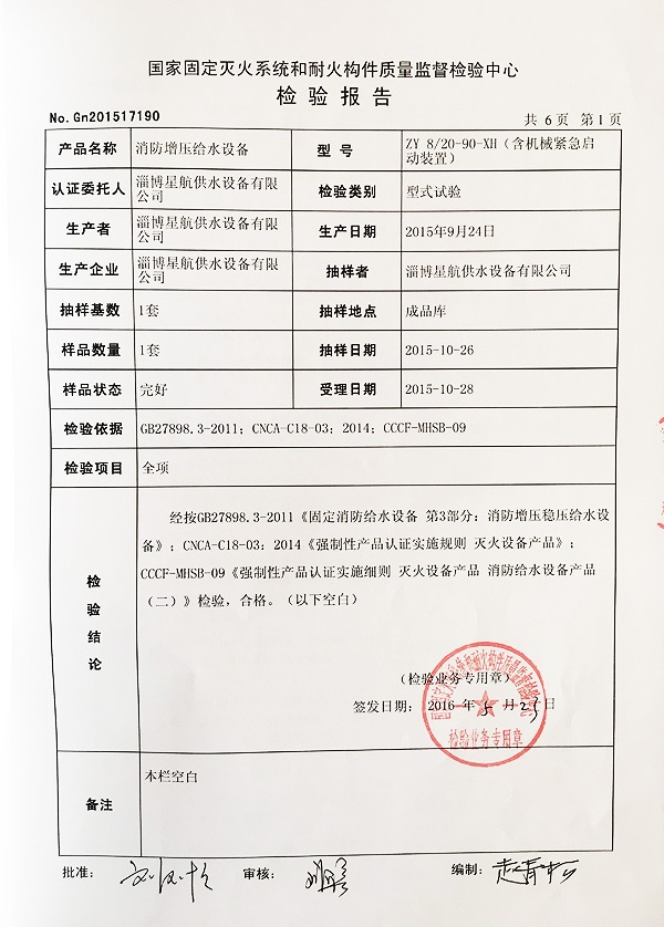 消防產(chǎn)品認證合格檢測報告齊全·十多年專注于供水設備生產(chǎn)制造